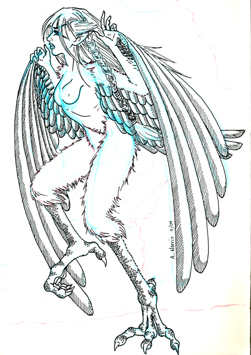 A Harpie in the more mythological sense. ink & pencil, 9" x 12" ![]()