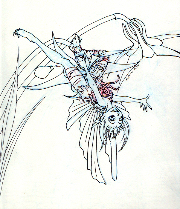 A columbine fae at play. pencil & ink, 9" x 11" ![]()